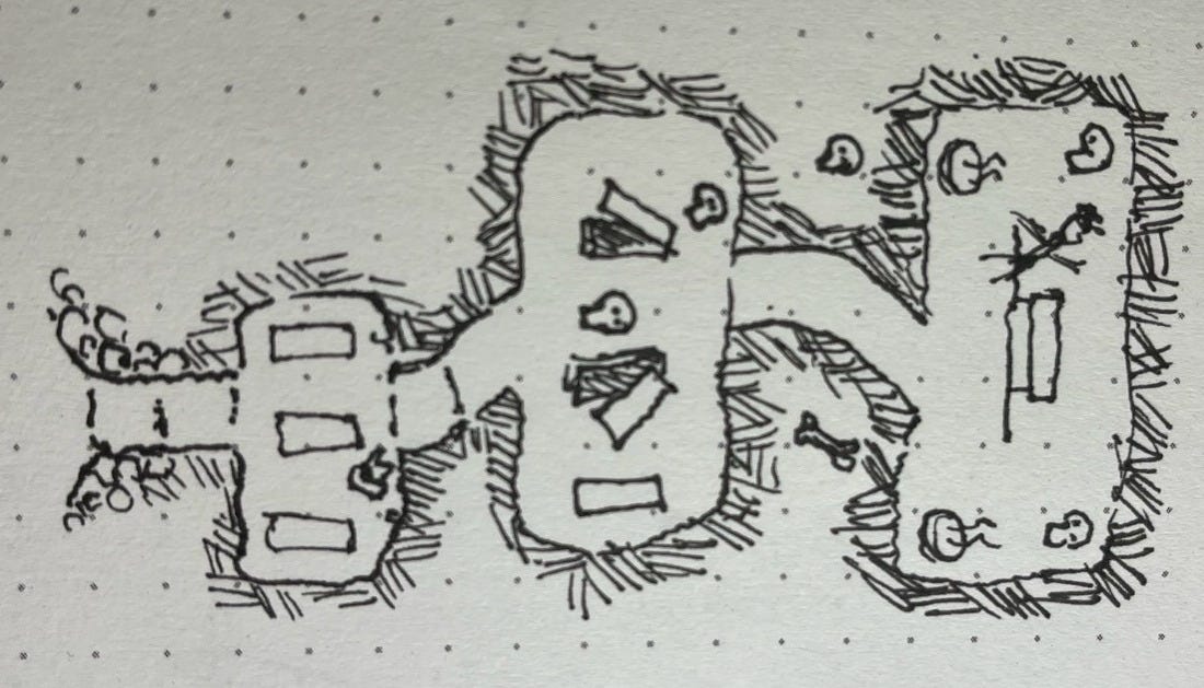 I made the cairn 3 rooms thinking there it might be more dangerous than it turned out to be. In future delves I will make dungeons bigger for more action.